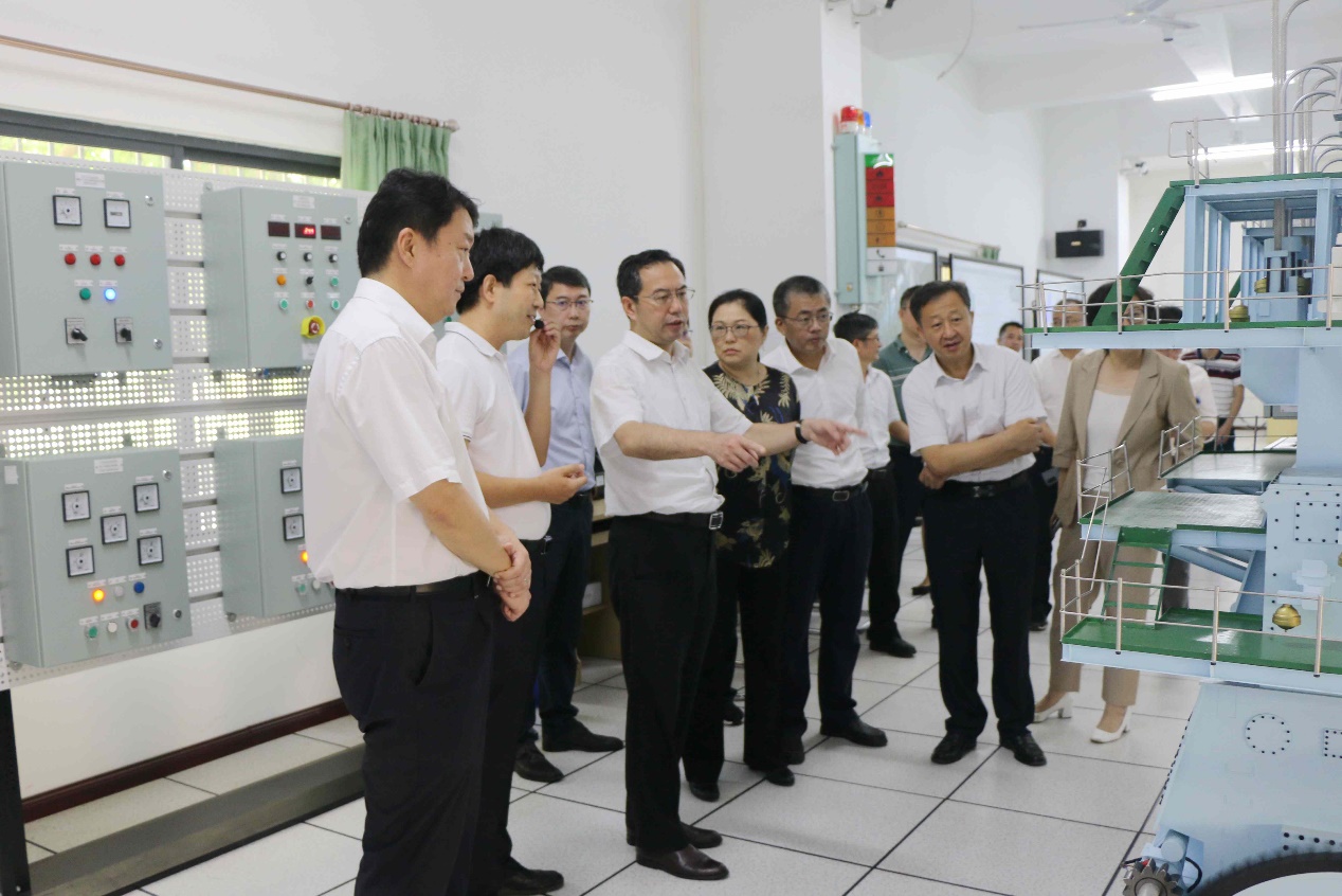 在轮机模拟器实训室,海洋信息工程公司船舶电子电气工程专业负责人刘世杰向王斌介绍了轮机模拟器,包括集控台、电站、主机遥控台、主推进系统模型、应急发电机间和驾驶台等组成部分的主要功能。在工作人员的操作下,轮机模拟器通过实物模拟与软件仿真,呈现了船舶机舱的工作情况。王斌表示,轮机模拟器的效果逼真,教学直观,公司在实践教学过程中可更多地进行训练,培养更多的专业航海人才。