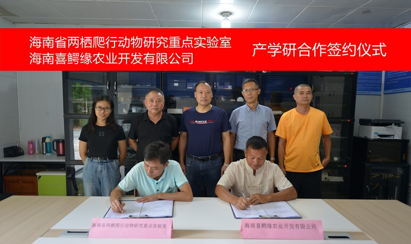 公司海南省两栖爬行动物研究重点实验室与海南喜鳄缘农业开发有限公司签订产学研合作协议