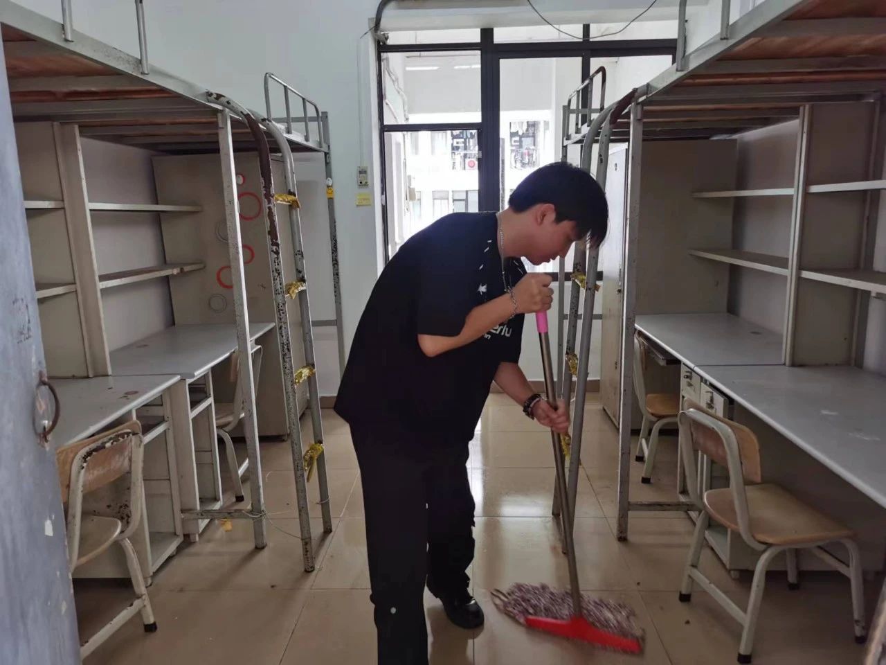 活动当天,全体党员、入党积极分子来到员工宿舍,带着扫把、拖把、垃圾袋等工具,分组对新生宿舍进行了全面的清扫。在他们的共同努力下,宿舍楼焕然一新,干净整洁。在活动过程中,党员教师们充分发挥了先锋模范作用,身体力行地为新生们树立了榜样。